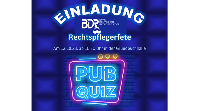 Der Vorstand lädt am 12.10.2023 zu einer „Quiz-Night“ ins Ziviljustizgebäude ein.