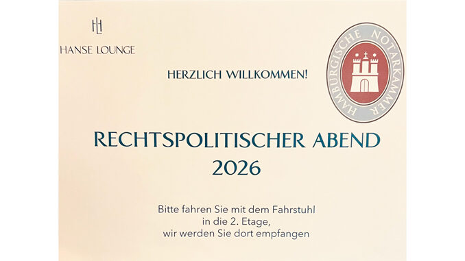 Am 21.04.2026 fand erneut der rechtspolitische Abend der Notarkammer Hamburg statt, an dem für den BDR Hamburg der Landesvorsitzende teilnahm.